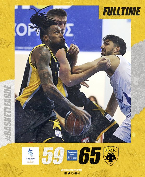 Το πρώτο της διπλό στο πρωτάθλημα πήρε στο κλειστό του Πλάτωνα κόντρα στον Ιωνικό η ομάδα μπάσκετ κερδίζοντας τον με 59-65, έχοντας για δεύτερο συνεχόμενο και νικηφόρο ματς όπλο της την ικανοποιητική άμυνα -έστω κι αν οι αντίπαλοι δεν ήταν top class δυναμικότητας.. Έτσι πάει με καλή σχετικά ψυχολογία στη Λετονία όπου την Τετάρτη με αντίπαλο τη VEF Riga παίζει ουσιαστικά την επιβίωσή της στη διοργάνωση.